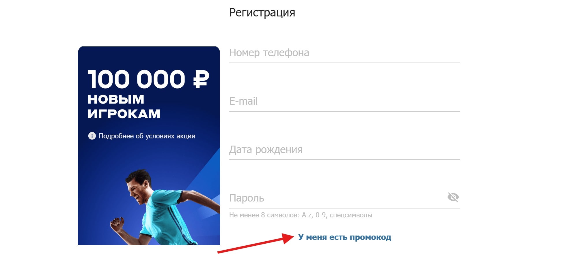 При регистрации. Специальный код, который новые клиенты вводят в анкете при создании аккаунта. Именно он часто даёт самый щедрый приветственный бонус. Будьте внимательны: код нужно вводить без ошибок, иначе бонус может не зачислиться.